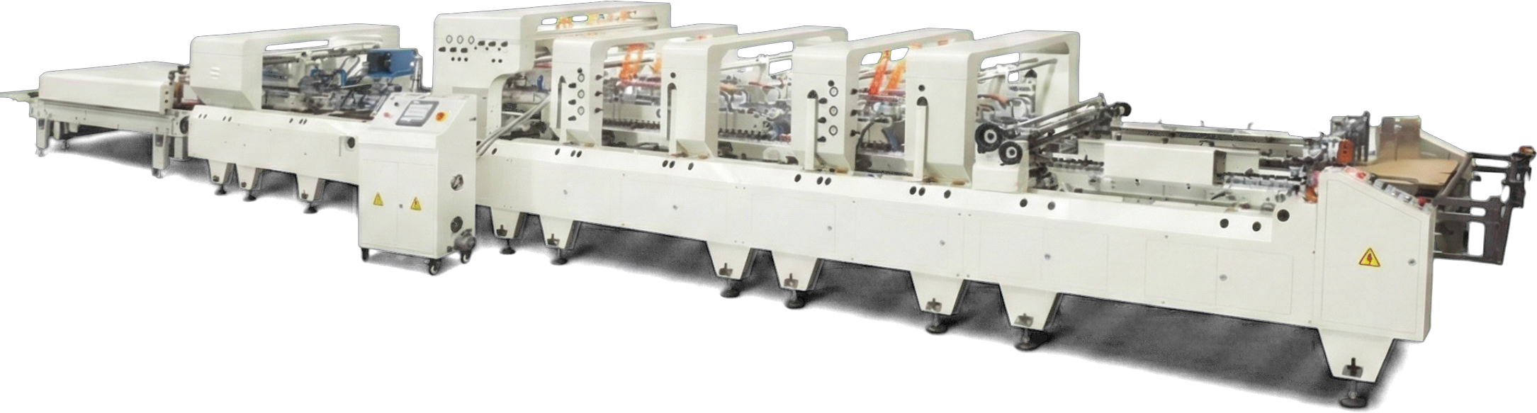A HS-FSC é a configuração top de linha da Youtian. Processa caixas linha reta, pré-dobra, crash lock bottom e especialmente 4&6 cantos. Alimentador com dispositivo de sucção, movimentação de painéis por motor, elevador pneumático completo. Mesa de pressão traseira pneumática com contador por kicker pneumático. Sistema de cola fria com 3 pistolas spray. Controle PLC com touchscreen e controle remoto wireless. Função trombone automática. Proteção de segurança confiável. Ideal para caixas de pizza, bolos, embalagens especiais.