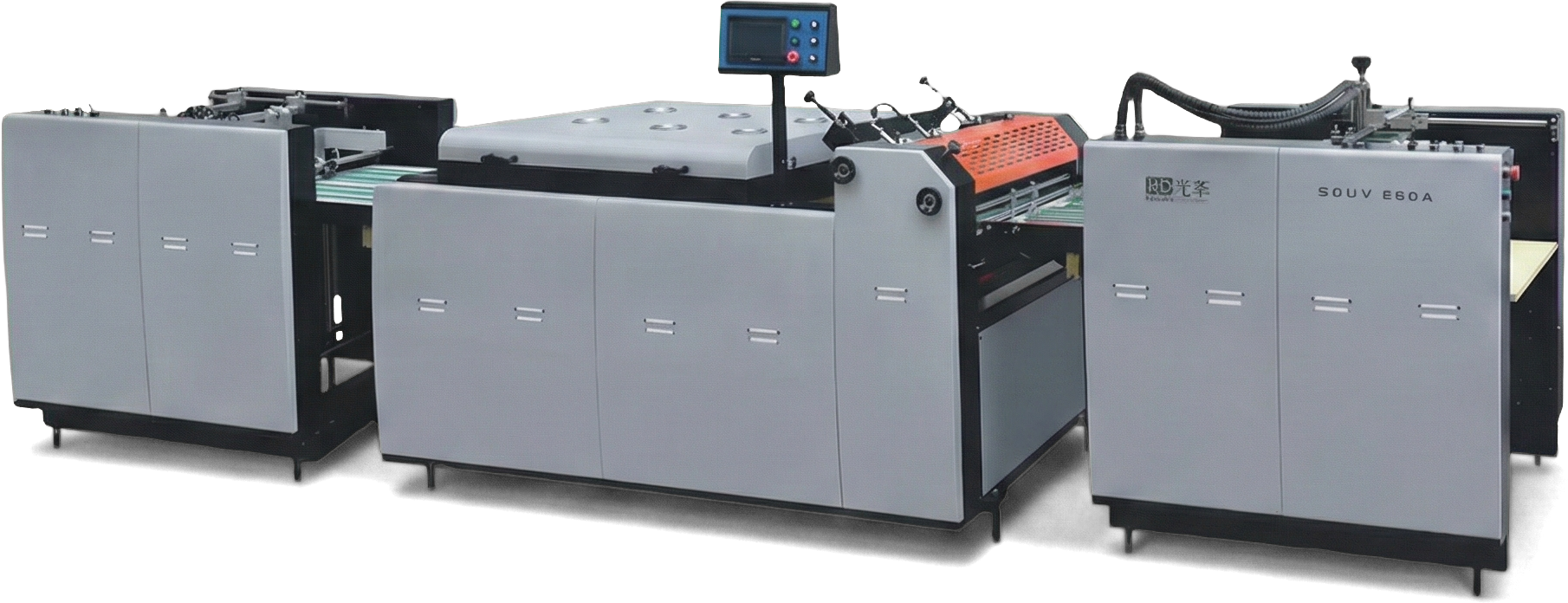 A série SGUV-660A/740A é uma máquina automática de revestimento UV projetada para aplicar verniz UV em materiais impressos. Ideal para impressão digital, HP Indigo, tiragem curta, cartões PVC e materiais com tintas base água/solvente. Sistema de três rolos garante superfície sem linhas ou casca de laranja. Sistema exclusivo de limpeza automática do rolo inferior com duplo reservatório evita secagem do verniz. Tanques duplos permitem uso separado de verniz brilhante e fosco. Esteira Teflon com correção automática e sistema de sucção. Configuração com 1 lâmpada UV + 3 IR com controle de temperatura constante para cura perfeita.