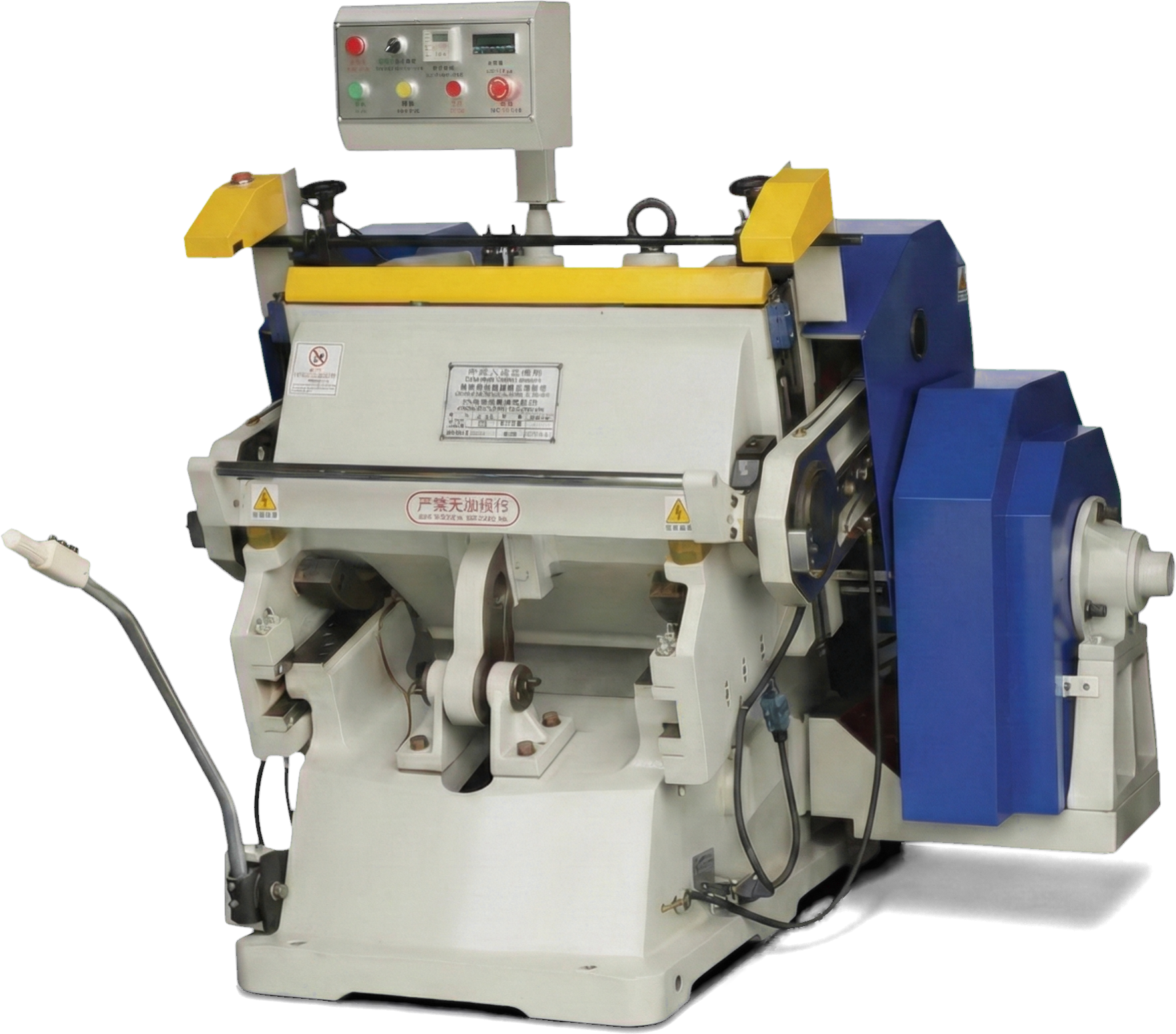 Máquina de corte e vinco aplicada principalmente para cortar cartão duplex, micro ondulado, caixas de papel e estojos de diversos materiais como papel, papelão e couro. Apresenta construção compacta e fabricação precisa, com maior força de corte, alta precisão, operação fácil, confiabilidade e segurança. O corpo do equipamento é feito de ferro fundido de qualidade com alta resistência e rigidez sólida. Embreagem eletromagnética única sensível e confiável em ação, podendo ser convertida para pneumática sob solicitação. Sistema elétrico adequadamente projetado com alta taxa de segurança.