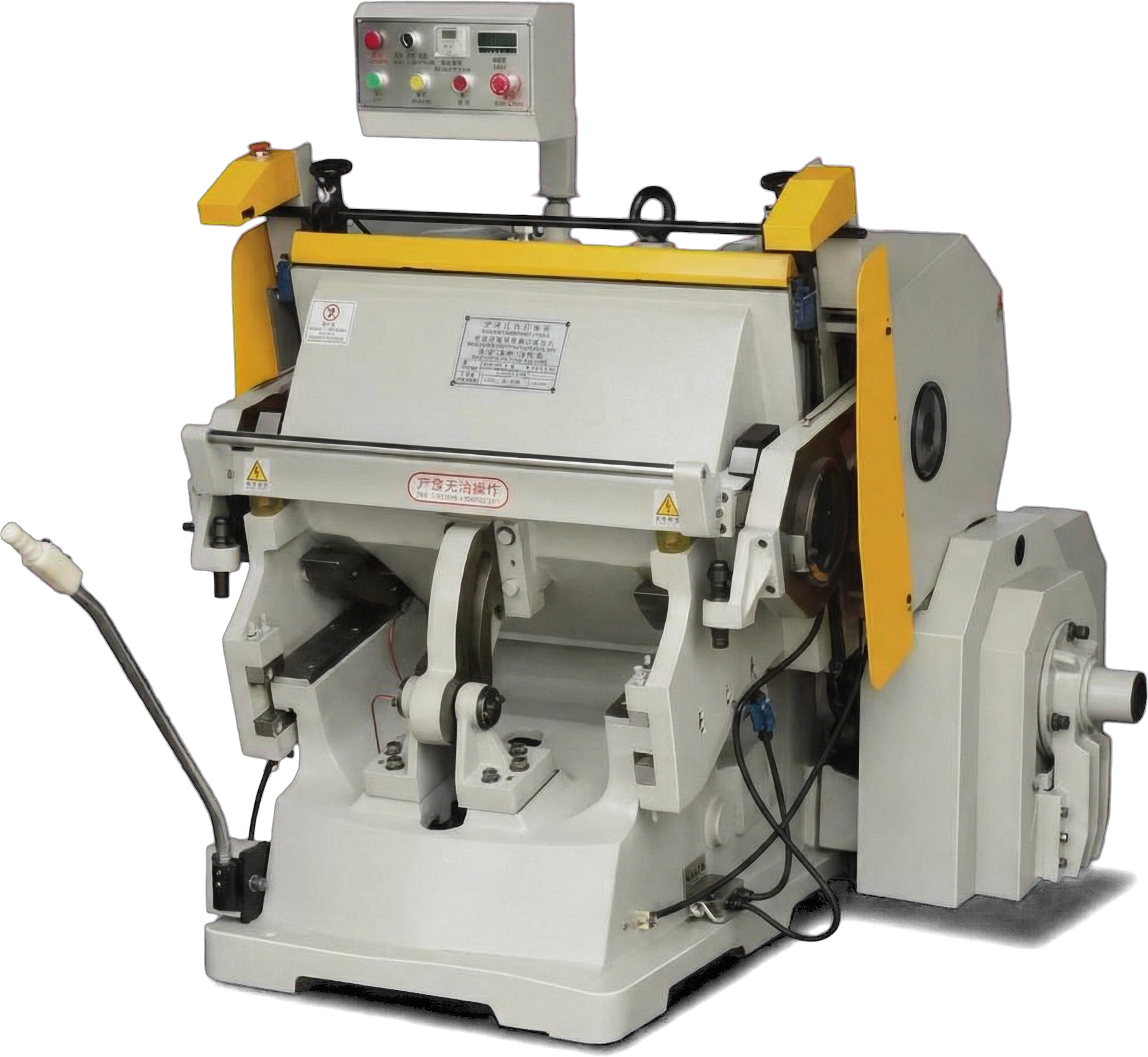 Máquina de corte e vinco aplicada principalmente para cortar cartão duplex, micro ondulado, caixas de papel e estojos de diversos materiais como papel, papelão e couro. Apresenta construção compacta e fabricação precisa, com maior força de corte, alta precisão, operação fácil, confiabilidade e segurança. O corpo do equipamento é feito de ferro fundido de qualidade com alta resistência e rigidez sólida. Embreagem eletromagnética única sensível e confiável em ação, podendo ser convertida para pneumática sob solicitação. Sistema elétrico adequadamente projetado com alta taxa de segurança.
